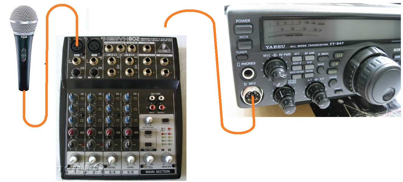 Proszę o umieszczanie tylko konkretnych przykładów podłączenia urządzeń peryferyjnych audio (mik) do TRX , nie sposobów zasilania 230V.
