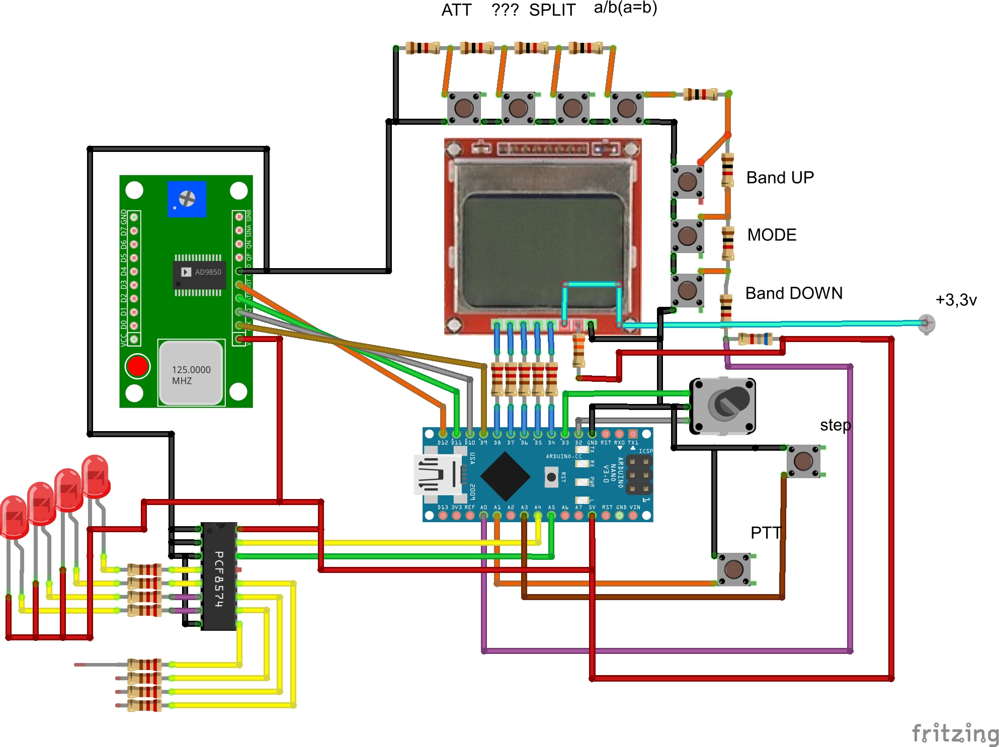 Czego nie ma - nie ma jeszcze smetra, pomysłu na niewykorzystany przycisk, rewersu dla CW i co najważniejsze - izolacji galwanicznej. Arduino jest super, bo można je podłączyć bezpośrednio pod USB, ale jeżeli podłączymy radio do stacjonarnego komputera, to możemy zrobić dym. Można by zrobić izolację na ADuM, ale to trochę drogo, więc chyba lepiej wyjęć bezpośrednio z pinów RX i TX UARTu