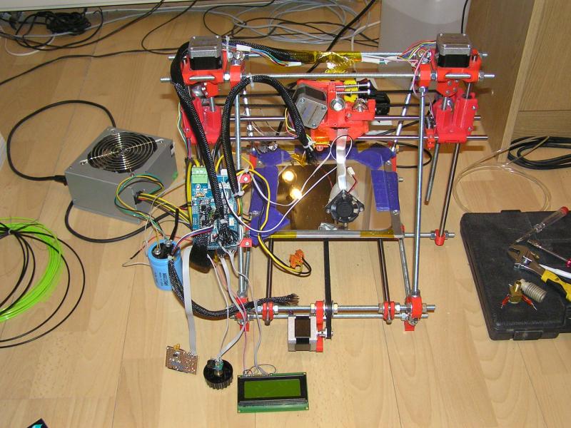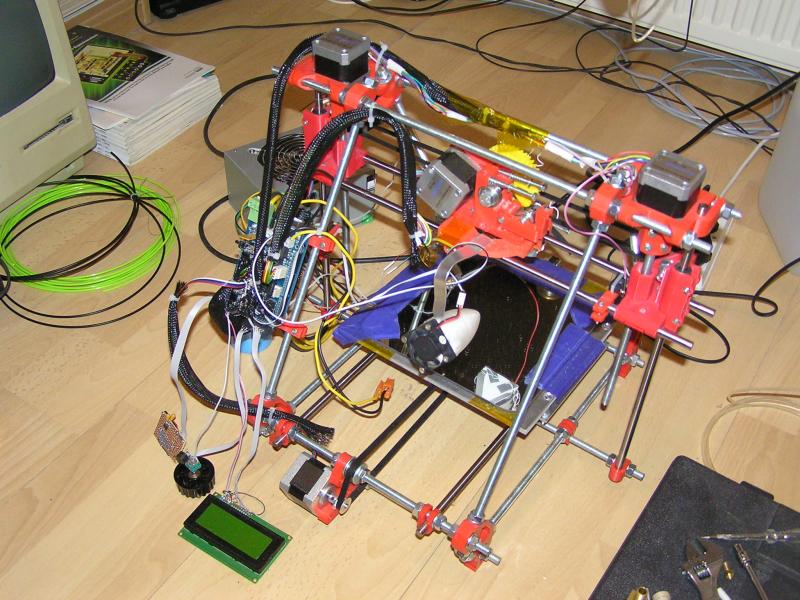 Drukowałem tylko PLA (ABS zdecydowanie mi śmierdzi), bardzo fajna zabawka, dużo pożytecznych rzeczy okołowarsztatowych da się zrobić. Poniżej zdjęcia. Jakoś nie mam pomysłu na obudowę i wala mi się parę rzeczy dookoła - LCD, enkoder i slot na SD. Z tyłu dodałem LEDa białego do oświetlania drukowanej rzeczy.