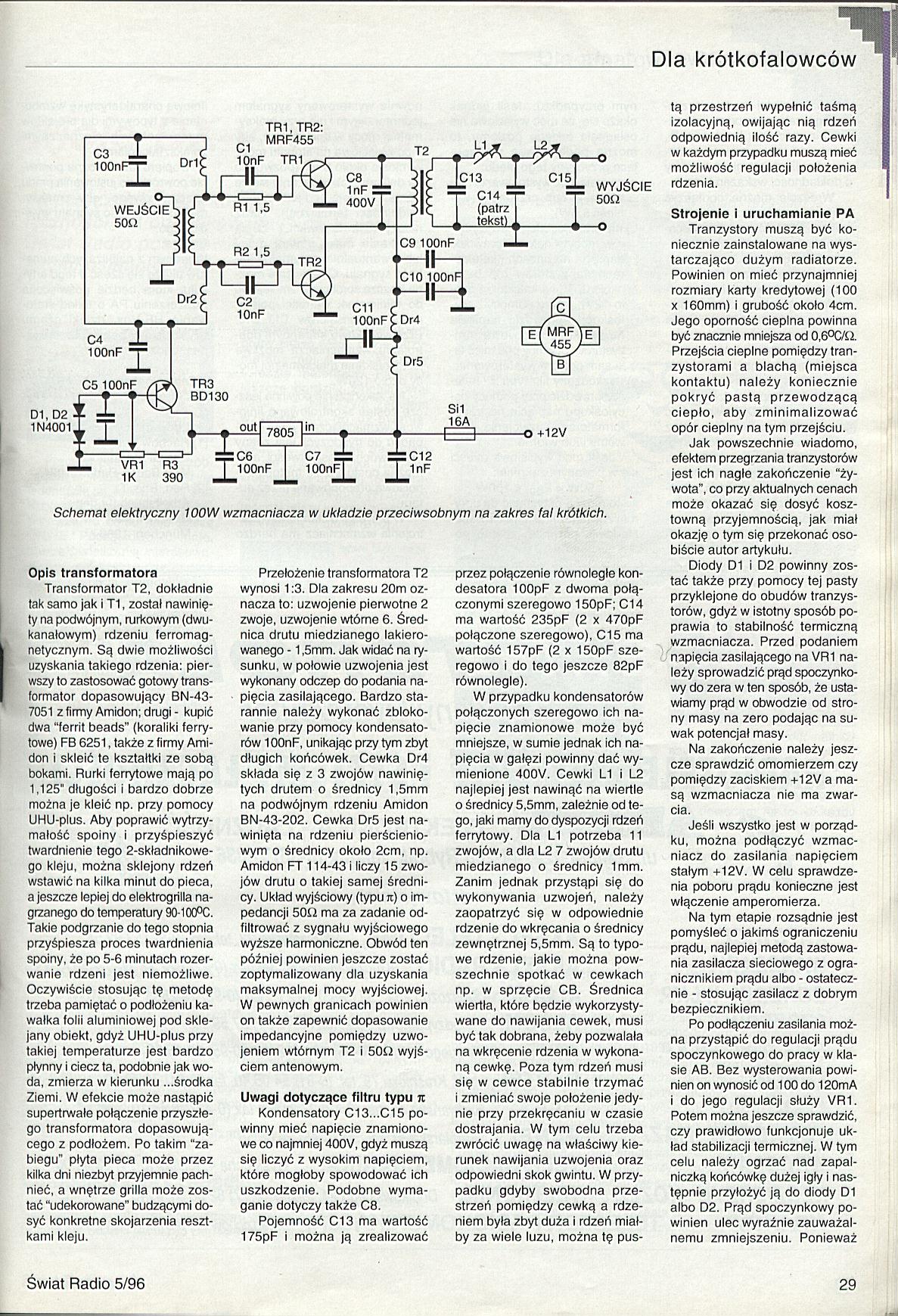 Po co tobie tyle mocy ... przed chwilą na QRP CW 1W dostałem RST 5nn +10dB FB. Pół świata w zasięgu. 2 tranzystory VFO, 2 tranzystory PA, 4 tranzystory odbiornik . koszt TRXa nie przekracza 5 zł. Zabawy 100 razy więcej niż z fabrycznego radia i 100W :-)