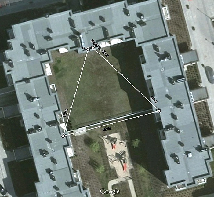 Co do anteny to warunki do zawieszenia delty jak widać są kuszące bo trójkąt idealnie wpasowuje się w wewnętrzny obrys budynku. S/N się pewnie znacznie poprawi a i mocy w razie konieczności będzie można pewnie wpakować więcej, czego w LW bym się zrobić nie odważył z uwagi na lincz oraz zagrożenie spaleniem na stosie. To z uwagi na zakłócenia w odbiorze jedynie słusznego radia oraz televizji z 24godzinną muzyką prosto z pola która ma tutaj niesamowite noty popularności....stop....