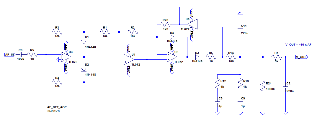 Najtrudniej jest aby detektor AGC był - w miarę liniowy, działał od małych poziomów, miał małą stałą czasową narastania i był najlepiej dwupołówkowy. Padło na układy z superdiodą.