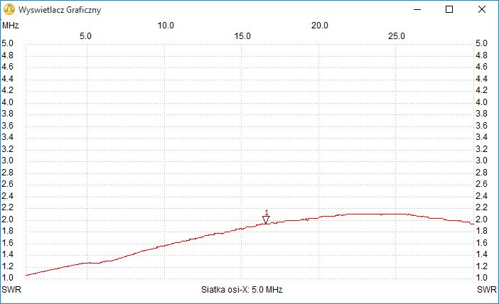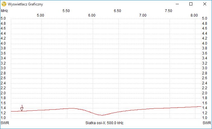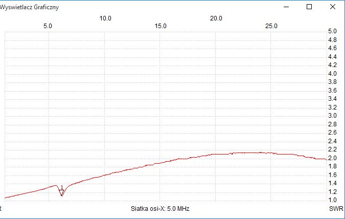 A poniżej wartość SWR z użyciem mostka do NWT7 (kursor jest w złym miejscu, powinien być na 6MHz Smile)