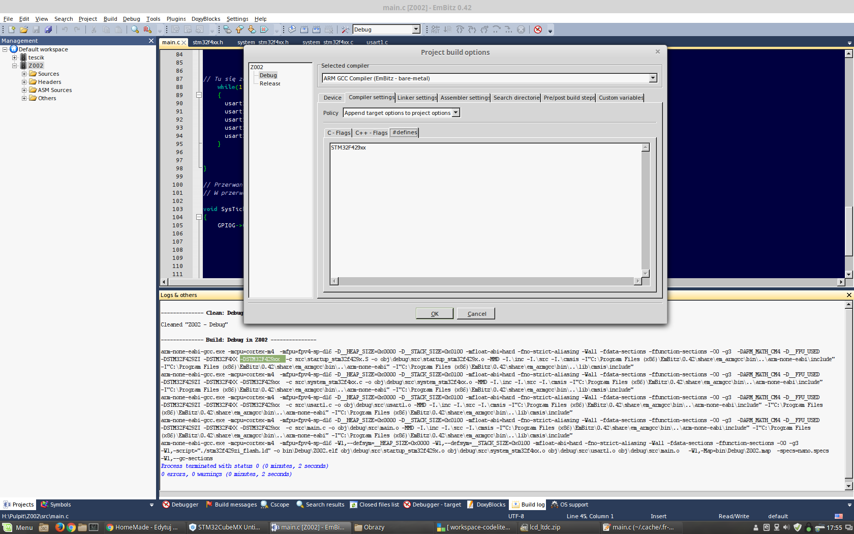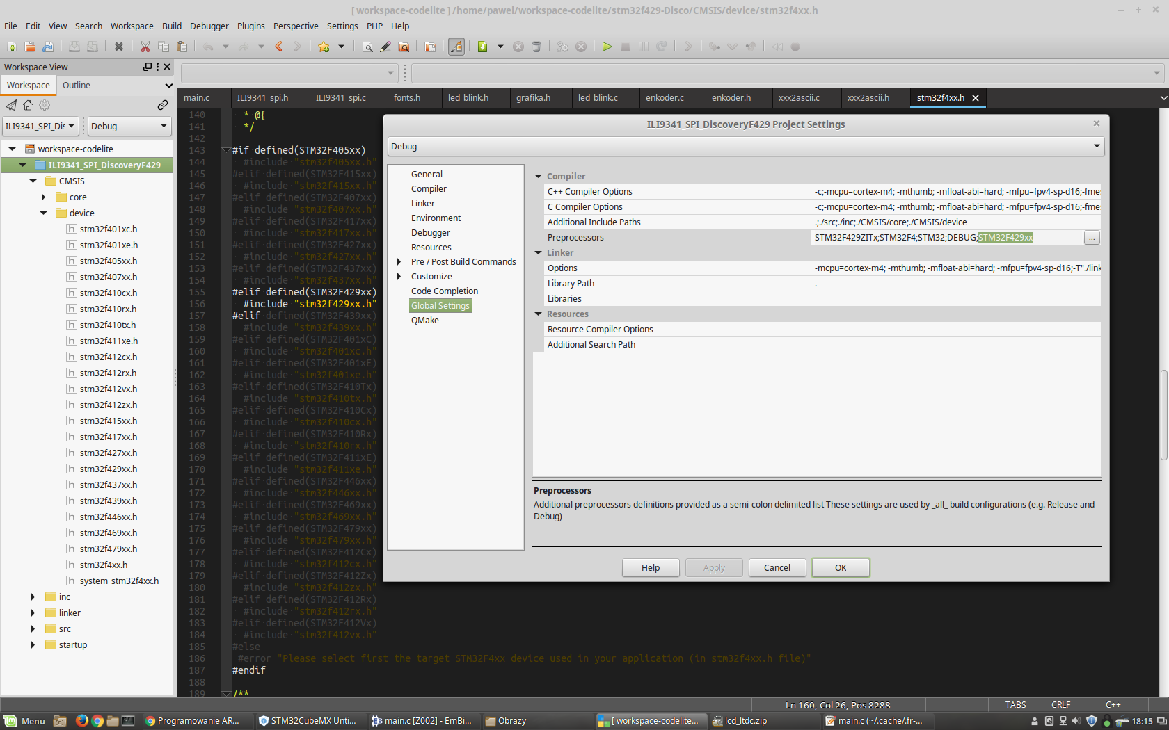 Nie moglem sobie poradzic z naglowkiem pod procesor stm32f429, poniewaz EmBitz nie ma mozliwosci wybrania tego modelu a w pliku stm32f4xx brakuje deklaracji pod LTDC. Na poczatku nauki to za trudne tematy do opanowania.