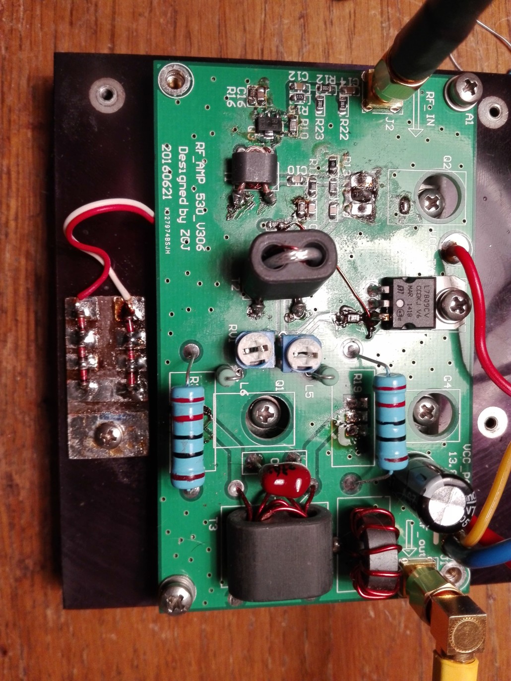 Zamontowałem w końcu filtry dolnoprzepustowe w Kacprze. Jutro przystępuję do budowy samego końca mocy tego chińskiego wzmacniacza. Mam nadzieję, że nie puszczę pierwotnej końcówki z dymem... Obecnie Kacper na sztucznym na 80m podaje nieco poniżej 5W, a na 40 w granicach 4, więc powinno być bezpiecznie. Czy po usunięciu stopni wejściowych wzmacniacza trzeba realizować jakiejś dopasowanie?
