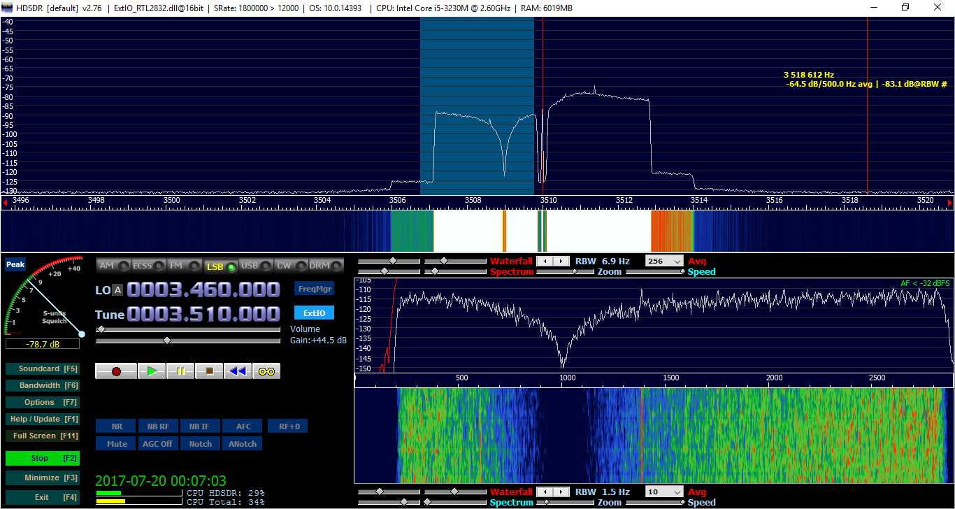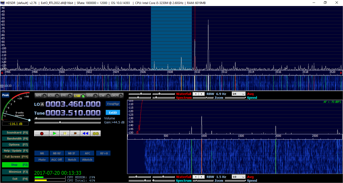Czułość jest nieco gorsza. Większość sygnałów które na DE były słyszalne, na moim też były słyszalne. Natomiast komfort słuchania było zupełnie inny - to co już słychać w DE w mocnych szumach (które drażnią ucho nawet na wąskim filtrze) na moim było słyszalne nieco ciszej ale z innym szumem - zasługa filtru LC. Gdyby zmienić pierwszy wzmacniacz na bardziej niskoszumny (np. LT3231)czułość powinna być porównywalna z innymi homodynami (bez wzmacniacza wejściowego). Nie udało się nagrać bo... Karta dźwiękowa w laptopie szumiała dużo bardziej niż odbiornik!