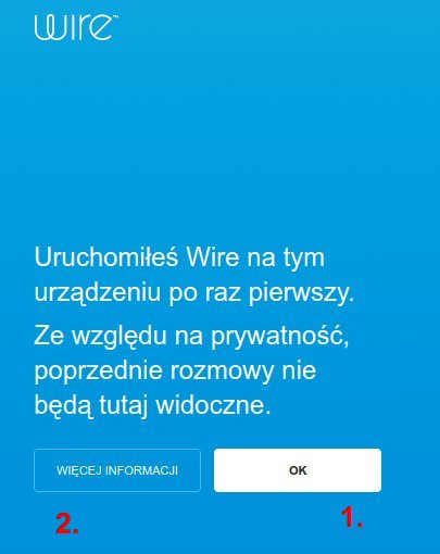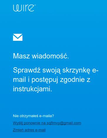 "1". Spowoduje to weryfikację oraz zakończenie procesu rejestracji naszego konta. Przeglądarka powinna otworzyć nową zakładkę, w której będzie uruchomiony komunikator WIRE.