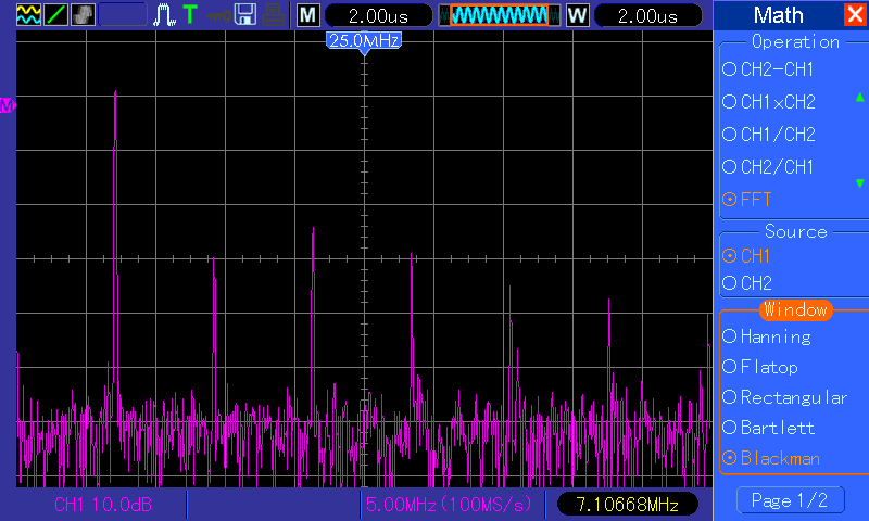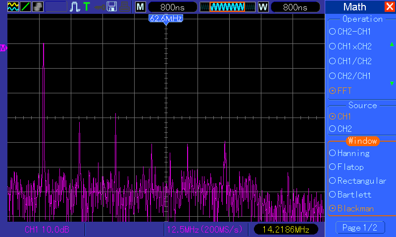 FFT też po trafie przed LPF. Po lpf za mała dynamika pomiaru fft-hantek , widać tylko czysty sygnał.