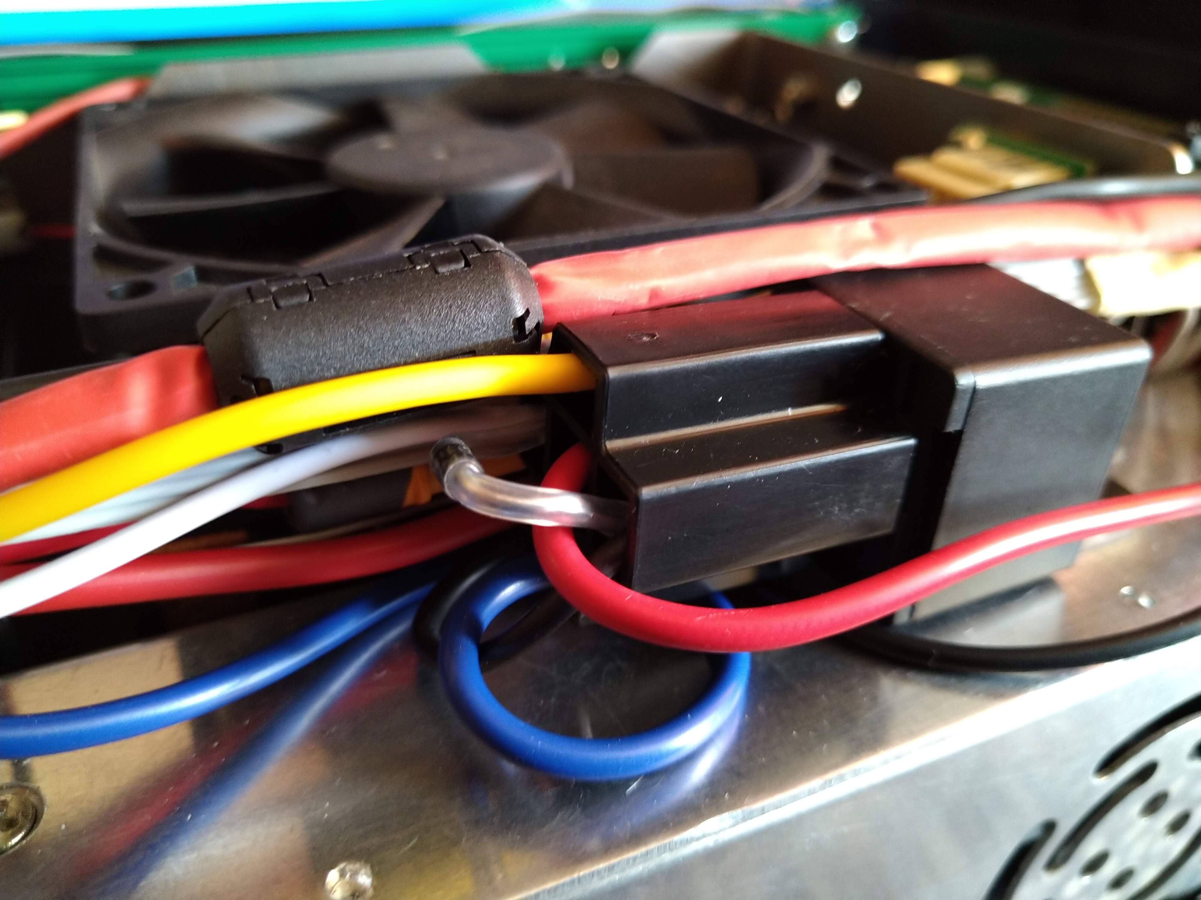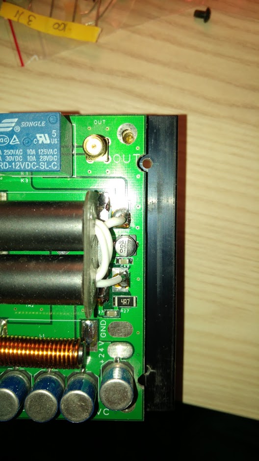 To już chyba moje ostatnie eksperymenty. Postanowiłem przysposobić wzmacniacz, aby miał możliwość podłączenia zewnętrznego zasilacza. Po części było to spowodowane chęcią uzyskania nieco większej mocy, ale też zgubienia głośnych prążków w paśmie 1,8 MHz (20 dB powyżej S9) występujących co ok. 85 kHz. Wszystko wynika ze schematu i załączonych zdjęć. Przekaźnik samochodowy z cewką na 24 V z obciążalnością styków 30 A, który po podłączeniu zasilacza zewnętrznego przełącza styki (NC i NO) i odpowiednio przekierowuje napięcie zasilania.