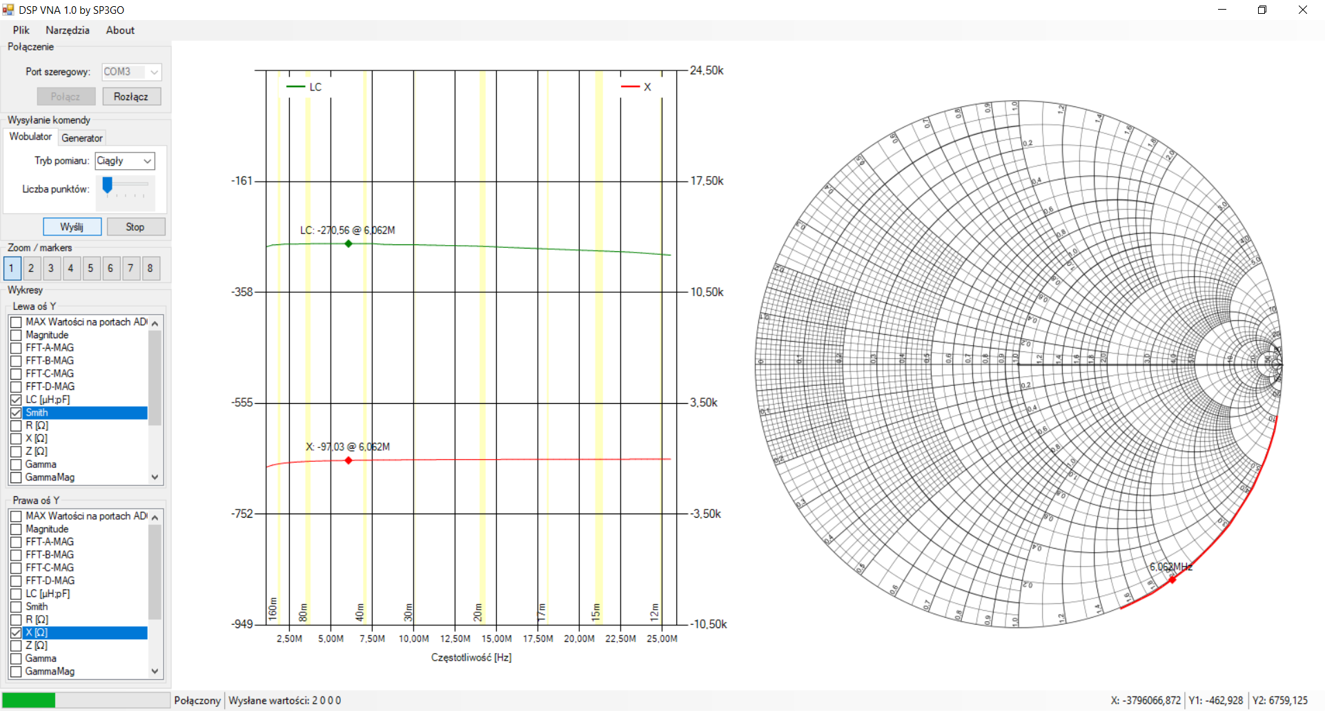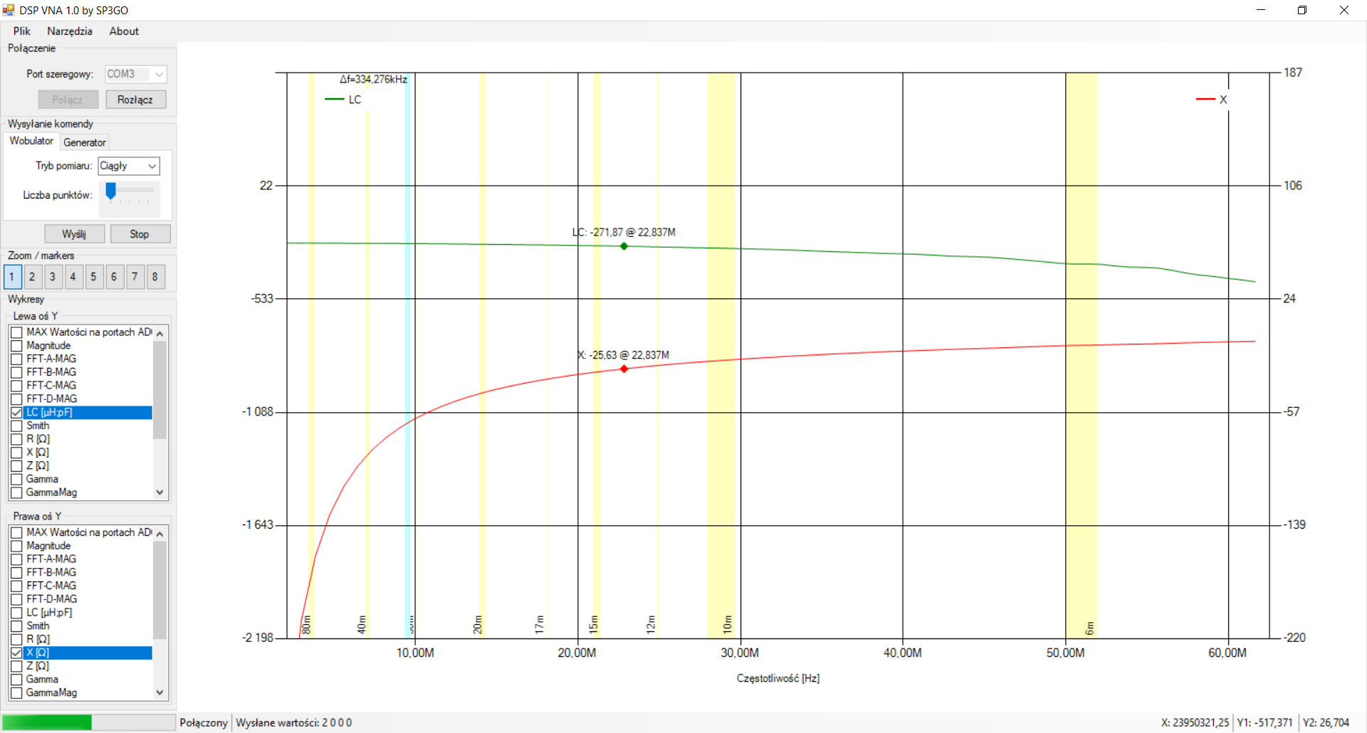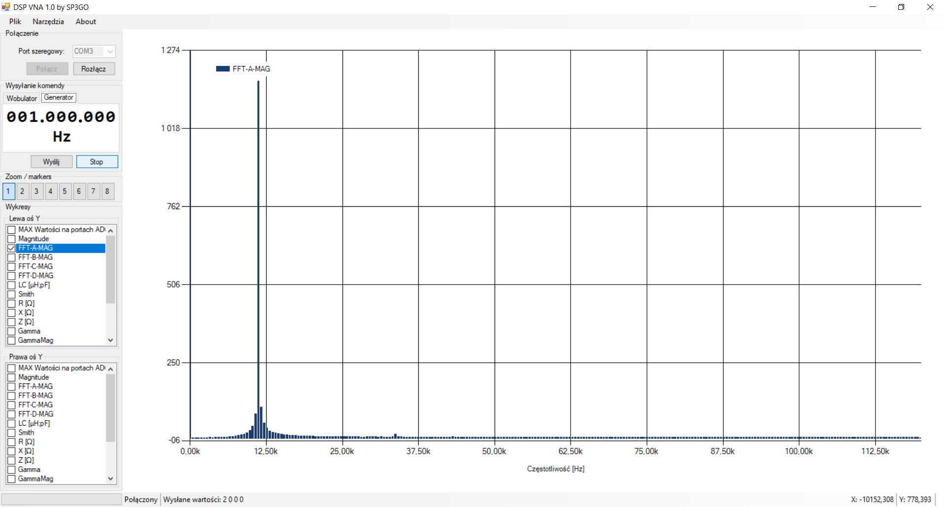 Na komputerze wykorzystuję interfejs graficzny znany już z poprzednich analizatorów, ale oczywiście zmodyfikowany kod pod względem DSP.