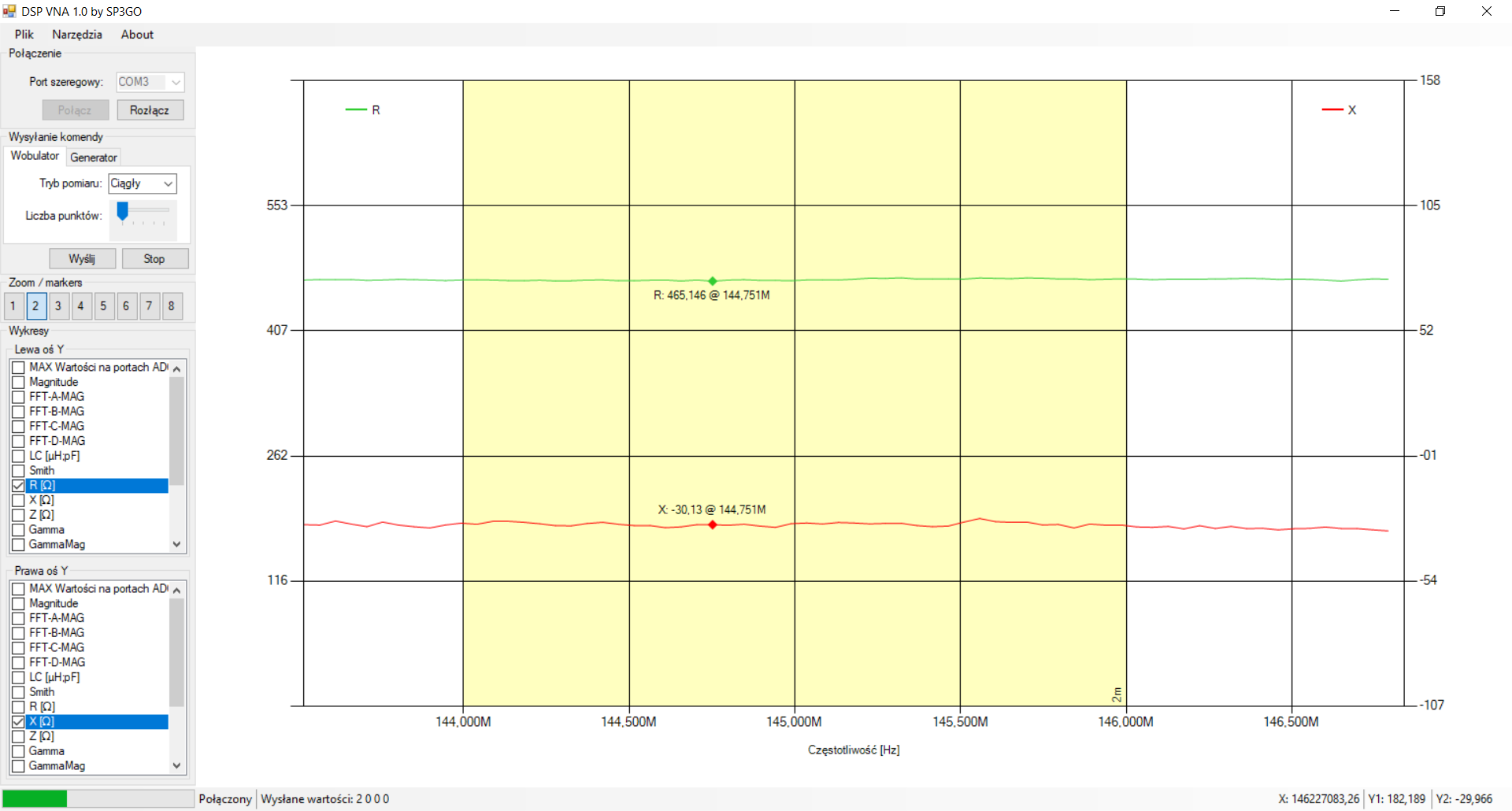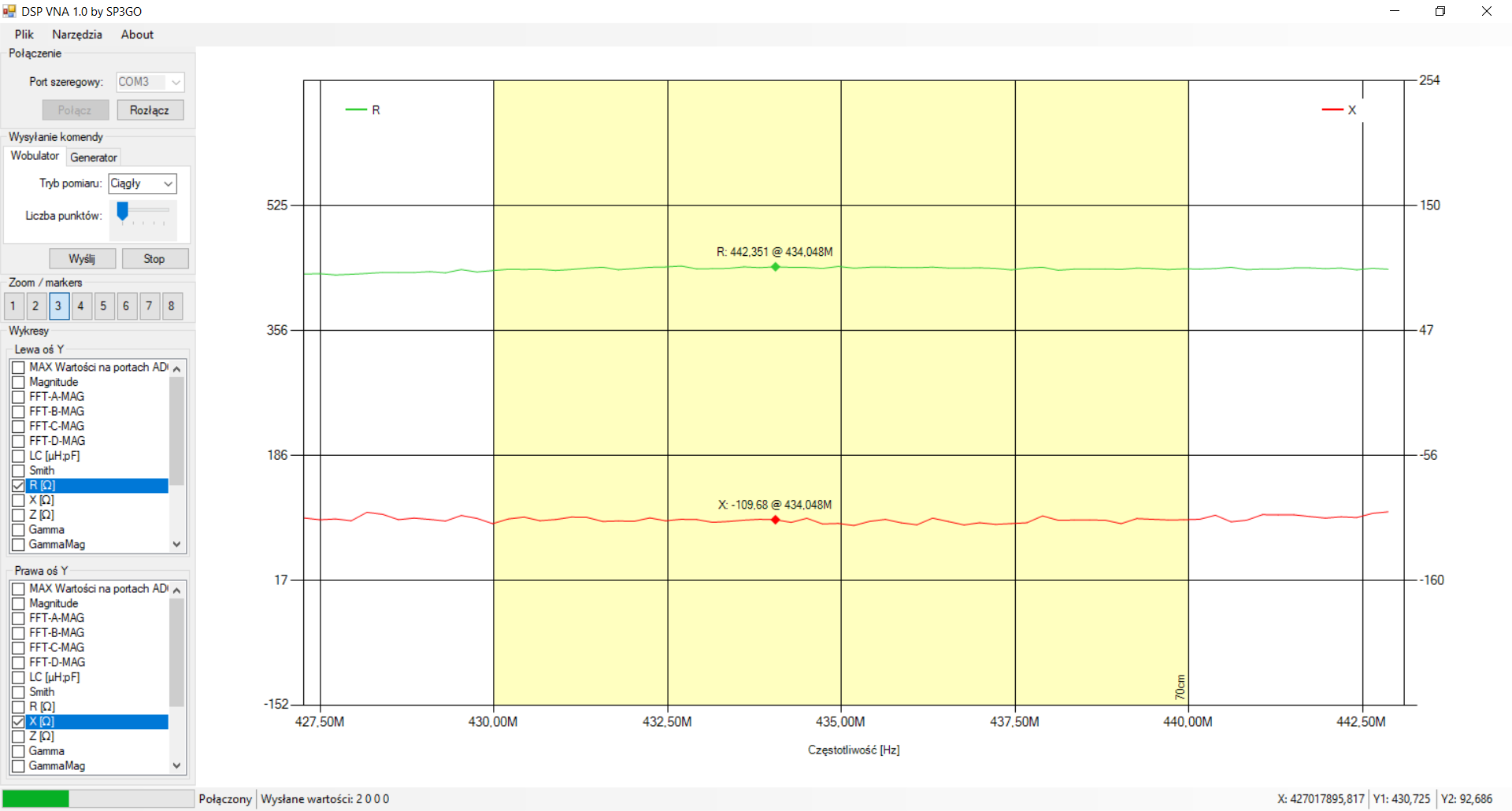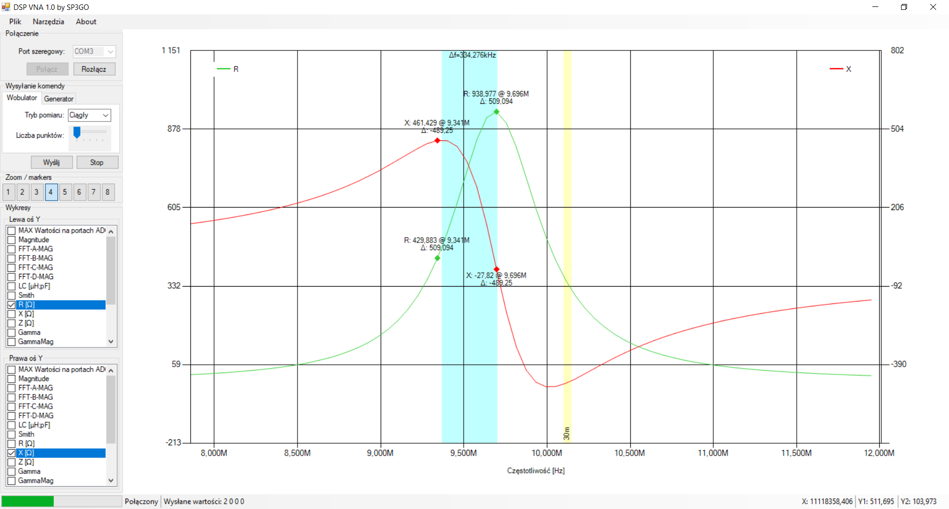 Na komputerze wykorzystuję interfejs graficzny znany już z poprzednich analizatorów, ale oczywiście zmodyfikowany kod pod względem DSP.