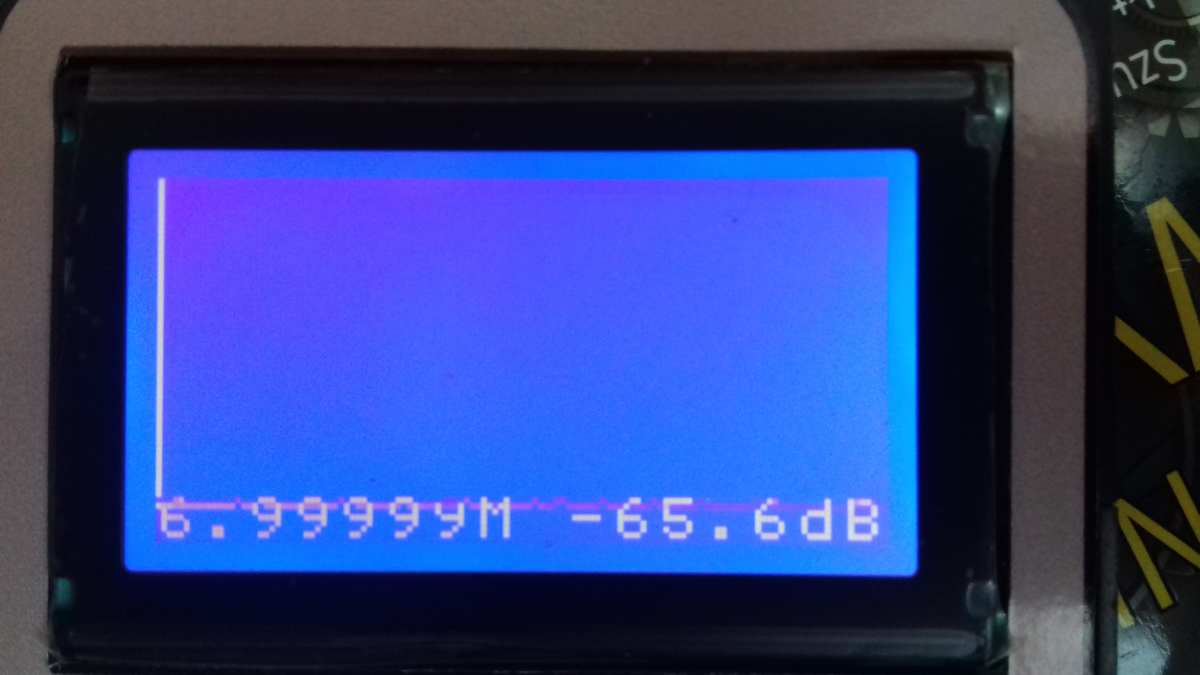Ale za pomocą NA01 udało mi się wykonać pomiar orientacyjny mocy z anteny stojącej w mieszkaniu (poziom mocy z anteny stojącej na zewnątrz zewnątrz jest za niski dla NA01). Okazało się, że jest on ok. 65.6db mniejszy niż moc referencyjna NA01, która wynosi ok. 16mW. Daje to moc na zaciskach anteny ok. 4.41e-9W czyli ok. 470uV na impedancji 50 omów. Odpowiada to poziomowi sygnału ok. S9+20dB!! co zgadza się z obserwacjami praktycznymi. Przez morze szumów i trzasków przedostają się tylko najsilniejsze stacje, zwykle daje się coś usłyszeć na paśmie 7MHz.