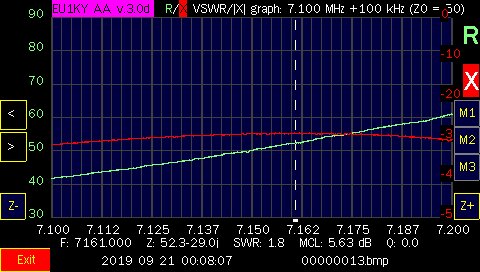 Pomiar anteny delta 40 m analizatorem Eu1ky
