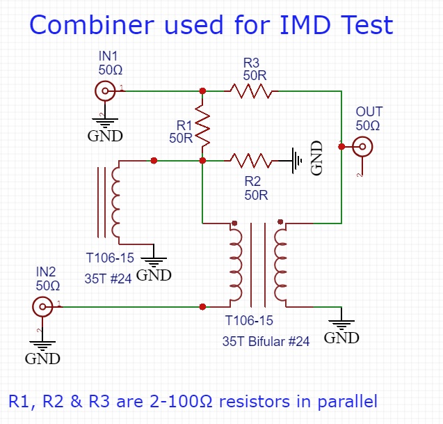Mostek do sumowania sygnałów z dwóch generatorów - nie jest szerokopasmowy: