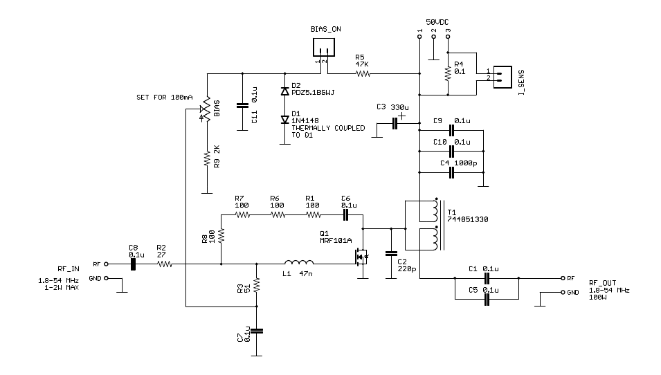 Wzmacniacz KF z 1W na 100 W z tranzystorem MRF101