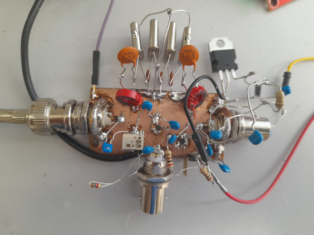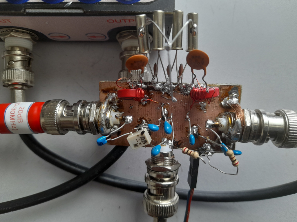 Wydaje się, że w jakiś sposób uszkodziłem mieszacz ADE-1 i jeden ze wzmacniaczy ERA. A jako, że nie mam innego mieszacza tego typu to musiałem i tak użyć NE612 z obwodem rezonansowym na wyjściu.
