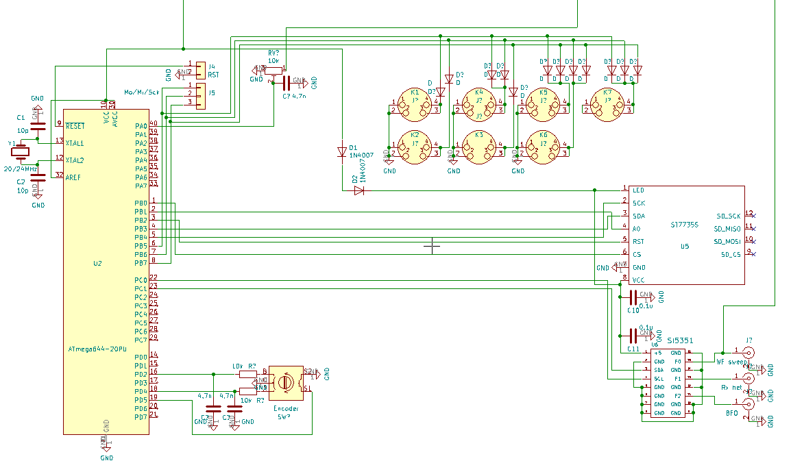 Ale po kolei, żeby sprawdzić u siebie pracę absolutnie wymagane jest posiadanie MEGA644, wyświetlacza ST7735S SPI, generatora SI5351, enkodera oraz co najmniej 2 przycisków.
