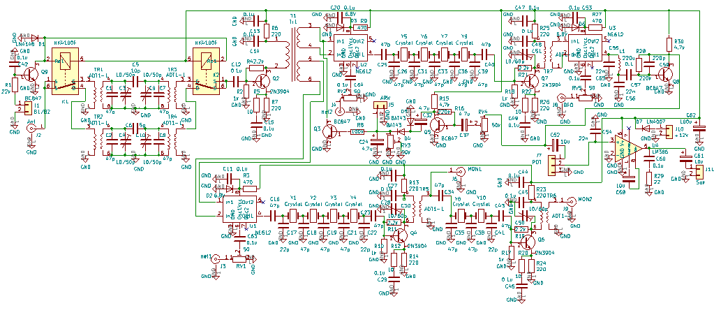 Odbiornik dolny będzie współpracował przy realizacji funkcji wodospadu. Podobnie jak odbiornik górny jest również rezonansowy i zaprojektowałem go z pewnym nadmiarem. Jeśli pierwszy stopień za mieszaczem nie wystarczy to zmontuję drugi stopień z filtrem kwarcowym na dwóch kwarcach.