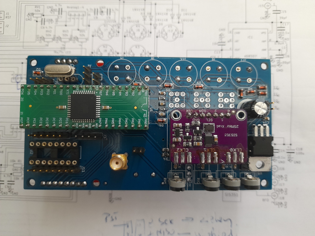 Niestety, moja radość była krótka bo po zmontowaniu, układ nie chciał działać. Kolejny dzień podnosiłem się z porażki sprawdzając czy pcb nie ma błędów projektowych lub wykonawczych ale ostatecznie błędu nie znalazłem. W końcu okazało się, że "winny" byłem ja bo zapomniałem, że definiując w programie układy sterowane za pomocą I2C - tu działa SI5351 - trzeba je podłączyć bo inaczej program zatrzymuje się próbując je zainicjować a mnie się tak śpieszyło do pierwszego startu, że pominąłem ten krok.