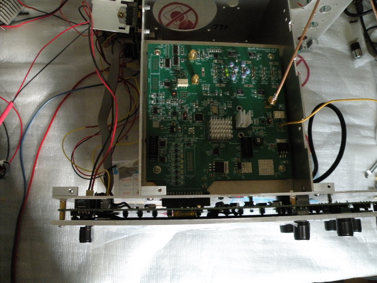 Obudowa jest dokładnie wykonana, płytka frontu pasuje idealnie, płytka main łączy się bez problemu z frontem. Ja na razie robię tylko odbiornik, więc zamontowałem jeszcze płytkę wzmacniacza, która też pasuje do otworów w tylnej ściance. Powoli uruchamiam odbiornik ale mam problem i nie mogę wgrać nowszych wersji niż 8.6.4