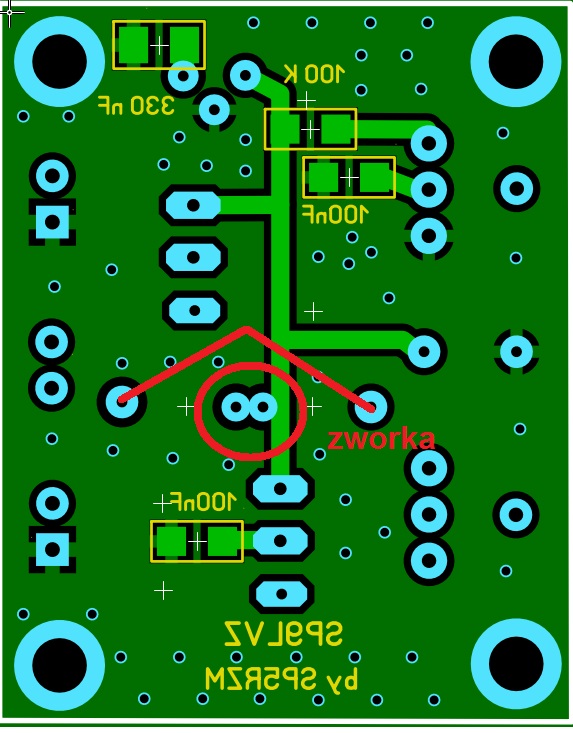 Wskazówki się przydadzą, bo drobne błędy na płytkach niestety się pojawiają... teraz przeglądałem płytkę wzmacniacza różnicowego s-metra i jest tam błąd zwarcia połączenia między diodami 1N4841, a ścieżką zasilania. Nie jest jednak krytyczny, bo my te diody pominiemy w montażu i zamiast nich zrobimy zworkę. Były one pierwotnie przewidziane do ewentualnego skorygowania wskazań miernika, ale nie są potrzebne. Można wlutować dla testów tylko jedną diodę z pominięciem środkowych otworów by sprawdzić czy wpływa na poprawnie wskazań s-metra (korekta charakterystyki wychylania wskazówki). Ale nie należy wykorzystywać dwóch otworów środkowych!.