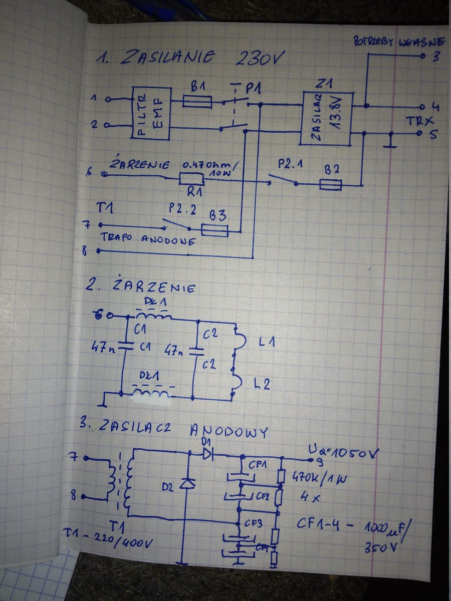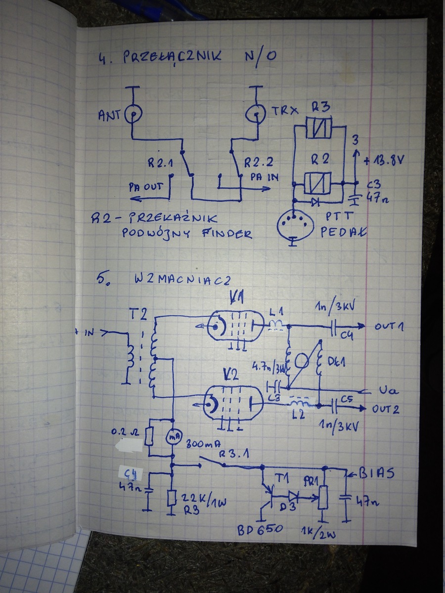 2a.W tzw międzyczasie przeprowadziłem próby polegające na podłączeniu dużego i wydajnego zasilacza używanego do zasilania innego wzmacniacza, dającego napięcie 1200V , oraz na sukcesywnym zwiększaniu wysterowania mocą aż do 50W dla emisji SSB. W efekcie uzyskałem moc wyjściową , szacowaną na 450W. Prąd katod przekraczał już 500mA.W trakcie prób , lampy były obserwowane , przy czym nie zauważyłem objawów przegrzania. Sygnał monitorowany był na odbiorniku SDR Płońsk , nie zaobserwowałem pogorszenia jego jakości .