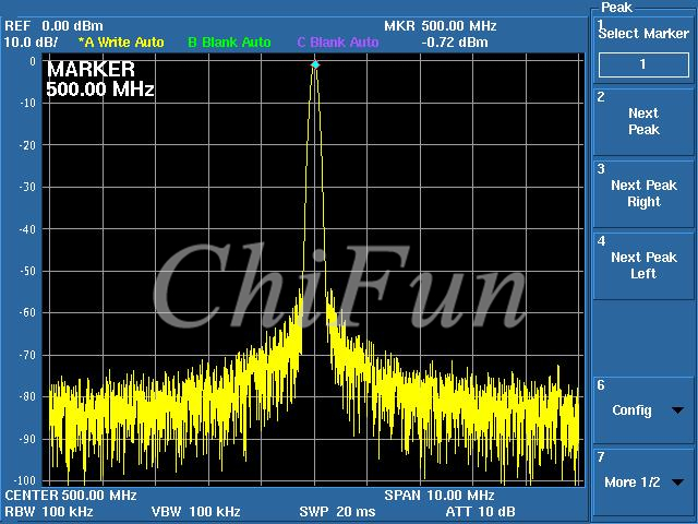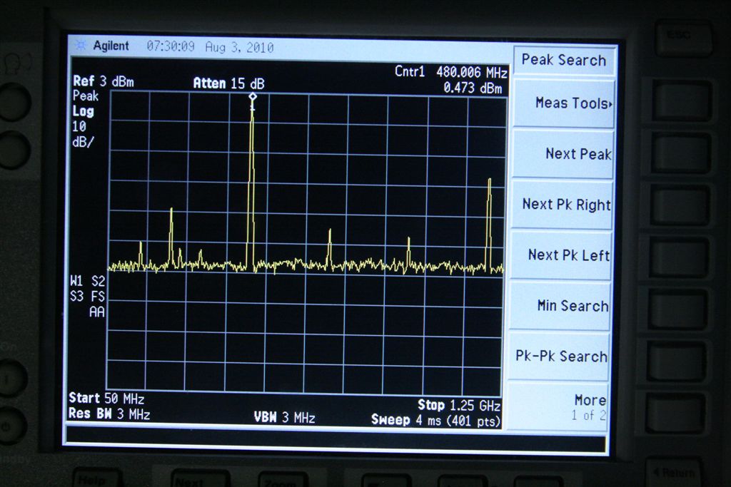 4. Operowanie powyżej 480MHz jest dość karkołomne - mogą w widmie pojawiać się produkty o odstępie gorszym niż 30dB w stosunku do sygnału pożądanego - w każdym razie trzeba to robić z pełną świadomością i odpowiednio interpretować wyniki. Poniżej ~480MHz wszystkie produkty niepożądane są na poziomie lepszym niż -40dB od sygnału podstawowego.