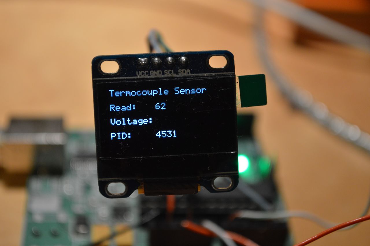 Do laminatora przykręciłem uszkodzoną grzałkę lutownicy (termopara) sygnał wzmacniam na LM358 i mierzę Atmegą. 120 st. to około 280 jednostek ADC