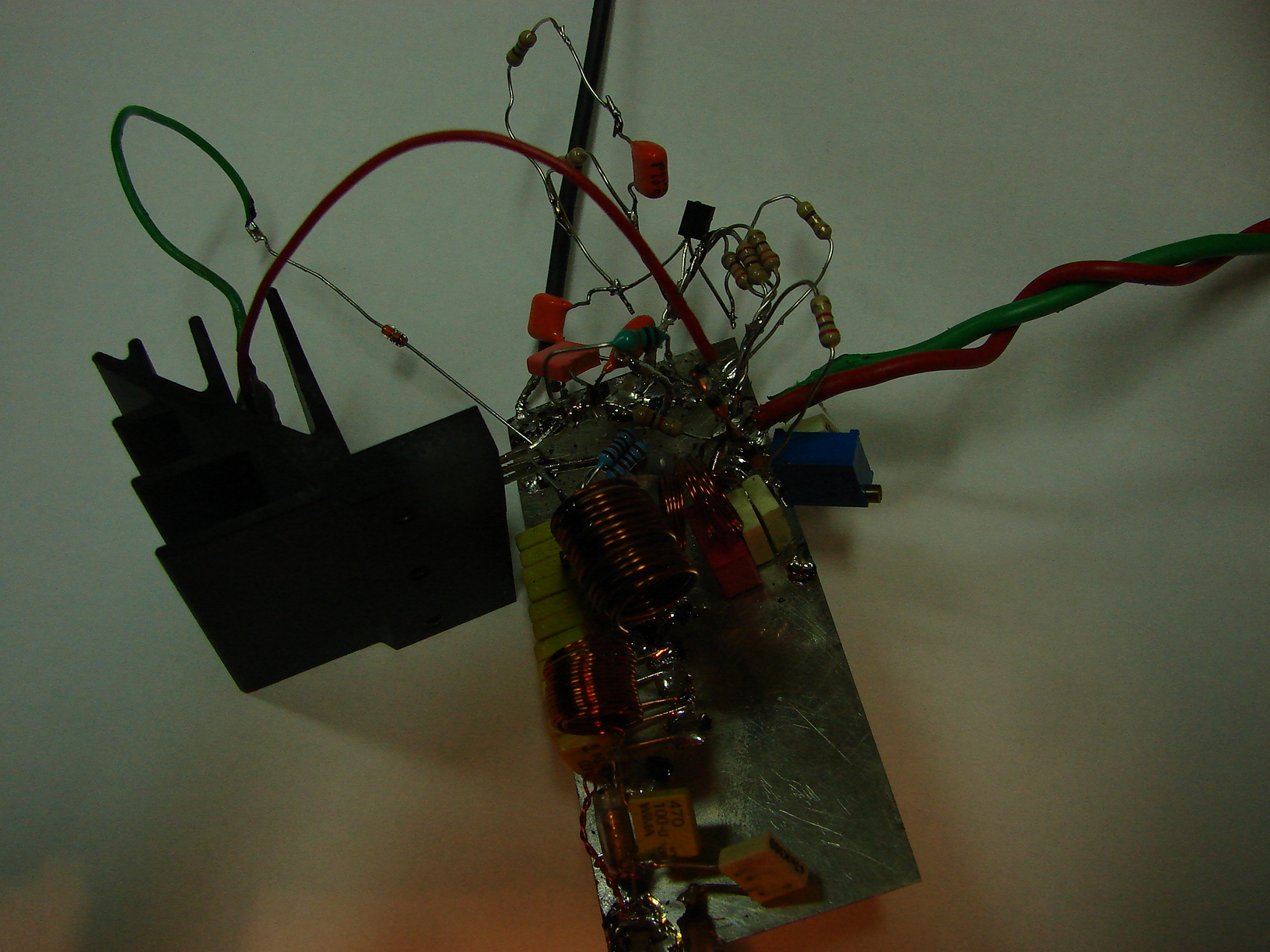 Uruchomienie zaczynamy od sprawdzenia filtru PI bez podłączania zasilania. Zamiast drenu tranzystora podłączamy rezystor mocy o oporności 10 omów - na tyle został policzonyu filtr.
