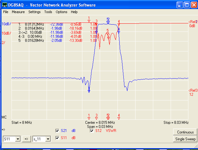(07-09-2011 21:59)SQ4AVS napisał(a):  Może trochę dłużej przyszło zaczekać ale załączam, wynik dotyczy jednego filtra, normalnie łączone szeregowo dwa. Jeden plik to filtr badany z dopasowaniem typu L, drugi rozpięty filtr by pokazać dynamikę przyrządu. Nie zważać na swr robiłem szybko i źle odchczyłem, patrzeć tylko na s11, s21. Dynamika bez ekranowania analizatora 80dB z ekranowaniem jeszcze lepiej.