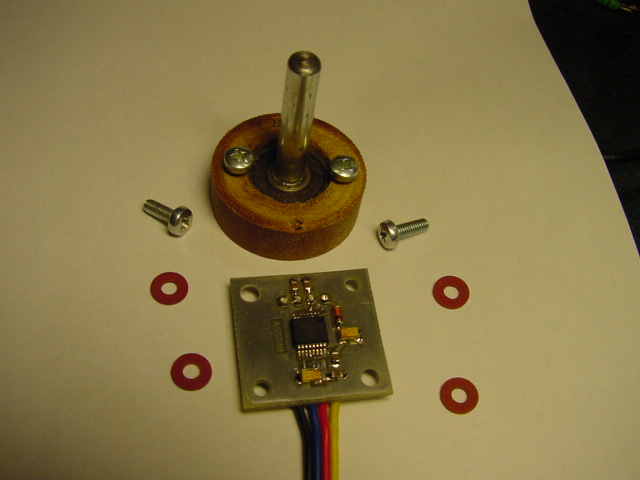 Impulsator wykonany podobnie jak SP2JJH na AS5040 , PCB to wzor Waldemara, konstrukcja mechaniczna wykonana nieco inaczej... pierscien wytoczony z tworzywa ( nie wiem jak ono sie nazywa) w taki sposob ze mocujemy w srodku lozysko z osia 6mm.