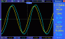 oscylogramy - żółty przebieg po LPF, niebieski po trafie wyjściowym.