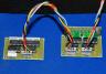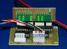 Na pierwszym zdjęciu prototypowy moduł gotowy do testów z procesorem syntezy. Dwa złącza na pierwszym planie (6 pin) do sterowania i łączenia modułów w kaskady. Na wyjściach sterujących (6+4, 6+4) zapięta płytka sygnalizacyjna na diodach LED pokazująca aktualny stan 16 wyjść z modułu.