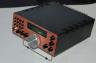 Po kolejnych poprawkach i modyfikacjach obudowy mój Piligrim przybrał kształt "prawie ostateczny". Nadrzędnym celem podczas projektowania nowej obudowy był łatwy dostęp do wszystkich modułów, ekranowanie oraz minimalizacja okablowania radia. Dwa pokłady z modułami, dolny (płyta główna + filtry combo), górny (skrzynka antenowa, SCAF, głośnik, przetwornica -12V). Na tylnej ścianie wzmacniacz PA20W wg G6ALU, gniazdo antenowe, zasilanie, RS232 oraz złącze do karty dźwiękowej. Klawiatura z pojedynczych klawiszy, za nią miejsce na moduł kompresora dynamiki. Wymiary obudowy 220x80x240mm, pokrywy zamykające (góra, dół) z obudowy T-92, konstrukcja wewnętrzna z laminatu. Łatwość obróbki laminatu oraz wykorzystanie handlowej obudowy pozwala na powielenie takiej konstrukcji w warunkach domowych bez dostępu do warsztatu. Szczegóły konstrukcyjne na zamieszczonych zdjęciach, może będą pomocne podczas "rzeźbienia własnych opakowań".