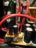 Filtr sieciowy został zainstalowany za wyłącznikiem. Jest przymocowany do wykonanego wcześniej kątownika przykręconego do transformatora. Wylutowałem tylko z płytki filtra zaciski na śruby i zastąpiłem je kołkami lutowniczymi. Z kawałka plastikowej płytki wykonałem osłonę zabezpieczającą przed porażeniem. Od strony druku ścieżki zostały ”wzmocnione” drutem fi 0,8mm oraz w starym stylu zabezpieczone kalafonią rozpuszczoną w spirytusie. Trytytką do kątownika zostały przymocowane doprowadzenia uzwojenia pierwotnego (w dodatkowej izolacji), żeby "nie wisiały w powietrzu".