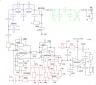 Załączam obiecany schemat odbiornika. Na zielono pokazałem obwody wejściowe (filtr pasmowy), na niebiesko filtr m.cz a na czerwono elementy obwodu arw. Tylko wzmacniacz końcowy nie ma wszystkich elementów (dodatkowe 2,3 kondensatory i opornik) i to cały odbiornik na jedno pasmo - bez heterodyny.