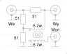 Układ pomiarowy zmontowany został w pudełku wykonanym ze zlutowanych płytek z laminatu jednostronnego a wymiary pudełka to 40/53/20mm. Całość została zamontowana wewnątrz metodą montażu przestrzennego i składa się z trzech gniazd BNC, trzech rezystorów 51 omów oraz transformatora na rdeniu dwuotworowym, na którego środkowej kolumnie nawinąłem 6 zwojów skręconą parą drutów izolowanych 0.4mm.